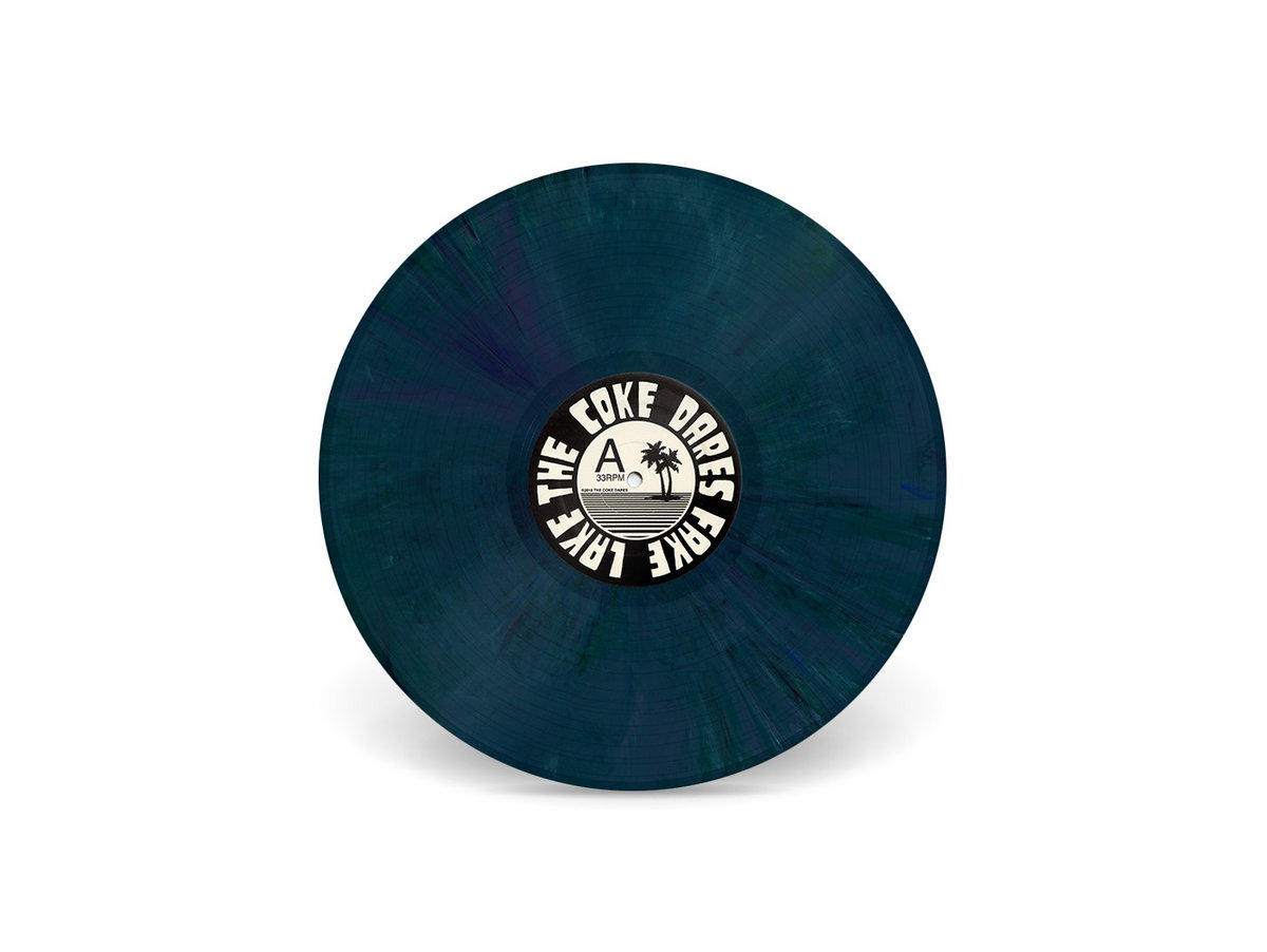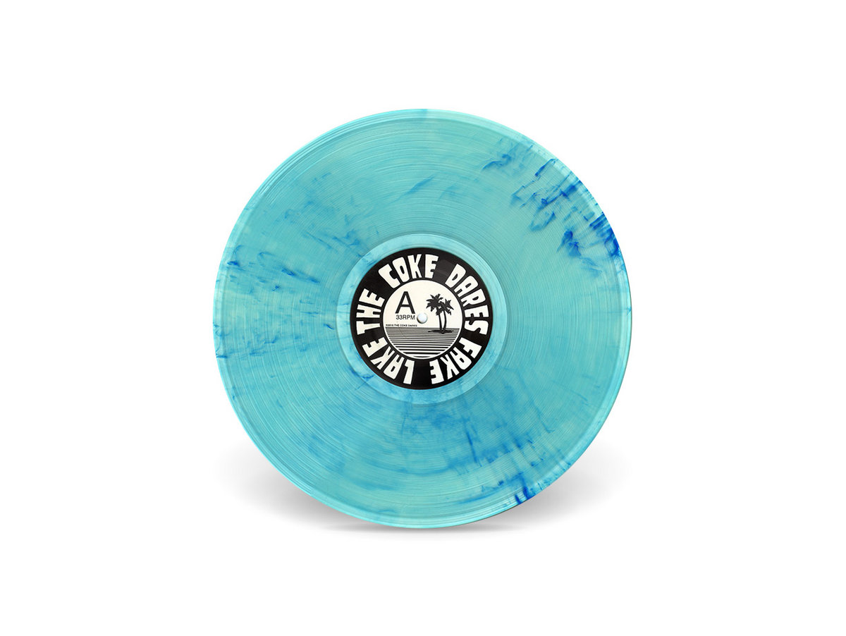 400 copies of the album are on this special "Fake Lake" vinyl, which is Coke Clear with Opaque Blue Swirl! This is the version of the record you'll find in the store, so we don't have many available to sell online.